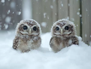 대신 솜털이 보송보송한 깃털이 추위를 막아주는 작은 올빼미 두 마리가 있었습니다. 부엉이들은 눈을 깜빡이지 않은 채 작고 동그란 몸을 살짝 떨며 그를 올려다보았습니다. 제레미의 가슴은 안도감과 경이로움으로 부풀어 올랐습니다.